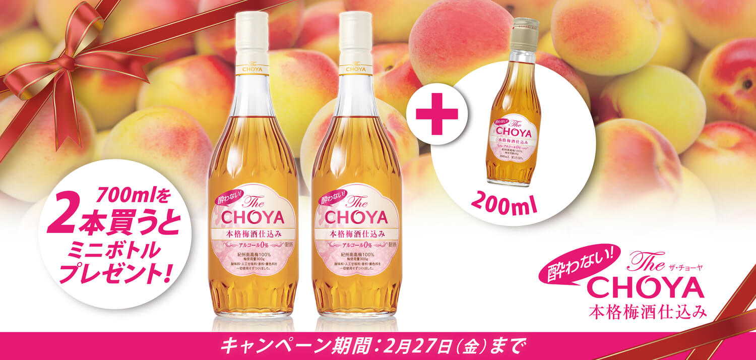 今‼「酔わないThe CHOYA 本格梅酒仕込み」を2本買うと200mlが1本付いてきます!
